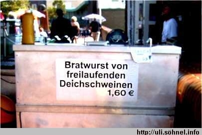 Bratwurst von freilaufenden Deichschweinen.