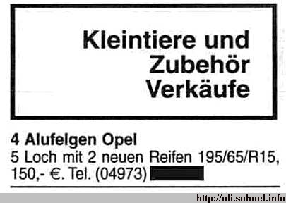 Wer kennt ein Tier, welches Opel heißt und Alufelgen benötigt?