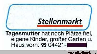 StellenmarktTagesmutter hat noch Plätze frei, eigene Kinder, großer Garten u. Haus vorh.