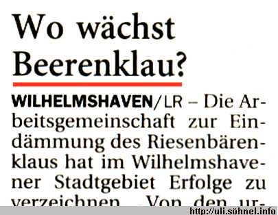 ... Die Arbeitsgemeinschaft zur Eindämmung des Riesenbärenklaus hat im Wilhelmshavener Stadtgebiet Erfolge zu verzeichnen..."