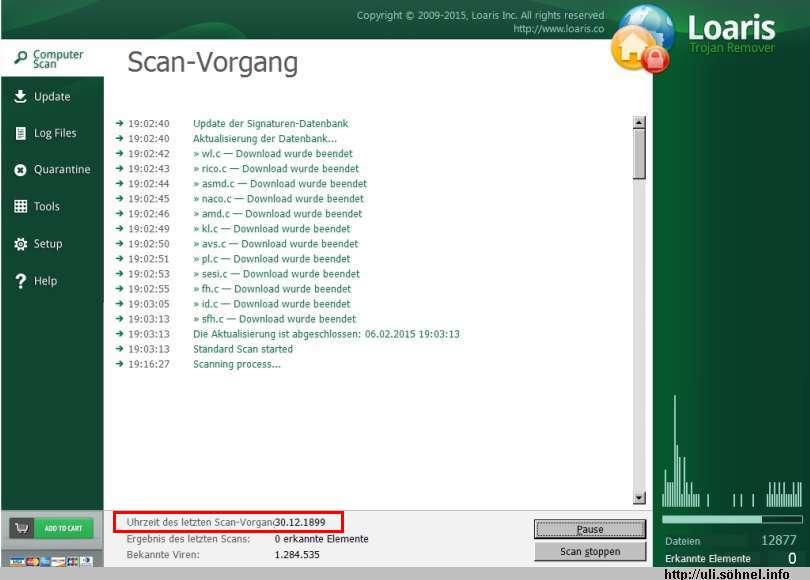Admin: An der Schwelle zum 20. Jahrhundert gab es zwar noch keine Computer, aber anscheinend schon Malware, wie es dieses Programm von Loaris dokumentiert,