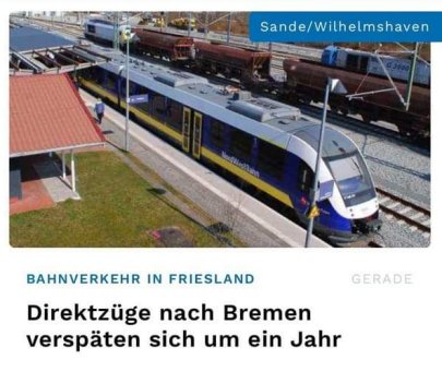 > Direktzüge nach Bremen verspäten sich um ein Jahr