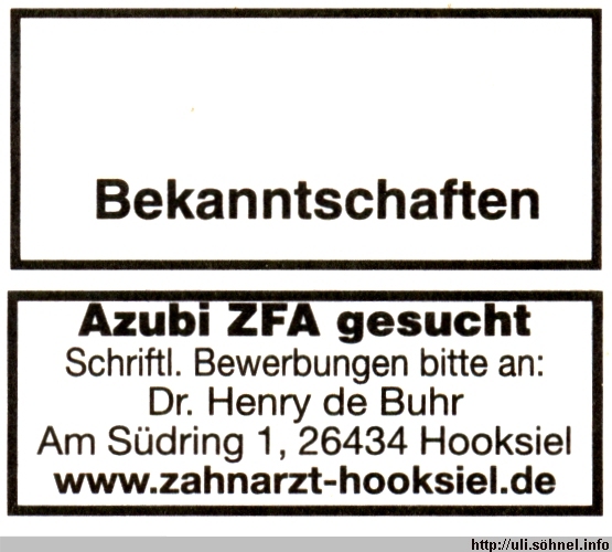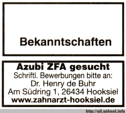 Azubi ZFA gesuchtSchriftl. Bewerbungen bitte an:..."